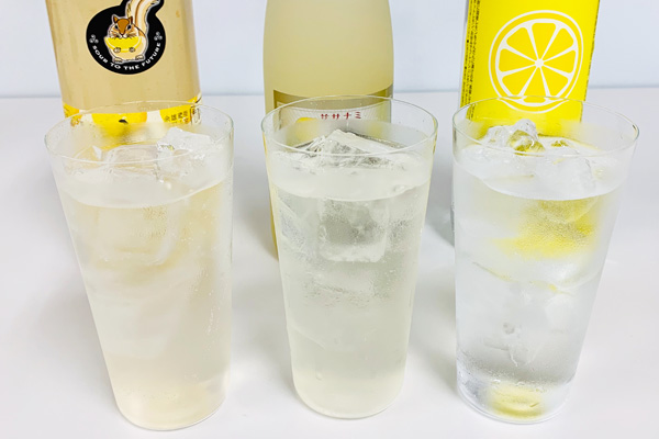レモンサワーの基本レシピは、グラスに氷を入れ焼酎を注ぎ、炭酸水を加え、混ぜる。そして、レモンを搾って最後にさっと軽く混ぜれば完成。もともとシンプルなレシピなのですが、これをさらにシンプルにかつ美味しくしてくれるのが、レモンサワーの素!今回試したのは、清酒ベースの「サワートゥザフューチャー 檸檬」、焼酎ベースの「ササナミ 檸檬サワーノモト」、そして蒸留酒の「OTSU VODKA LEMON」。