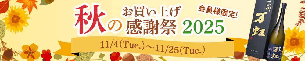 秋の夜長に美味しいお酒を愉しむ季節がやってきました。スーパーに並ぶ旬の味覚に思わず「今日はどんなお酒と合わせようかな」と胸が弾みます♪そこで今年は、皆さまの日頃のご愛顧に感謝を込めて、【会員様限定!秋のお買い上げ感謝祭】を開催いたします。今回ご用意したのはオンライン店”初登場”のアイテム。いつものようにお気に入りのお酒を選んだら、ついでに貴重なお酒の購入権利が当たるかも…!?皆さま、どうぞ奮ってご参加ください。