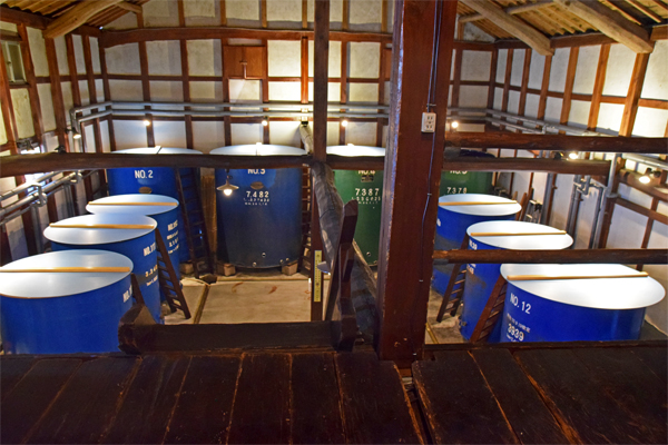 仕込み期間である冬場の外気は0度近くになる事もありますが、蔵の中はタンクが並んでいるので暖かく、下がっても5度くらいにしかなりません。東北地方の蔵と違って温度を上げる苦労が少ない分、管理はしやすいそうです。