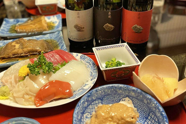 また、「森嶋」は魚貝類との相性が非常に良いのも特徴。この日は常磐沖で獲れた魚をメインに、アンコウの肝和え、カレイの煮つけ、メヒカリの唐揚げなどいろいろと合わせてみました。特にアンコウとひたち錦辛口、鮪と雄町、烏賊と山田錦は魚の生臭みが全く出ず、料理が進む素晴らしい相性でした。