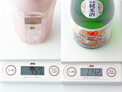 続いて、同じく従来の日本酒瓶720mlとの重さを比較してみます。
