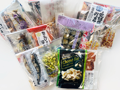 おつまみの詰め合わせパターンは色々!ランダムで2~3種類入りのセットをお届け致します。
