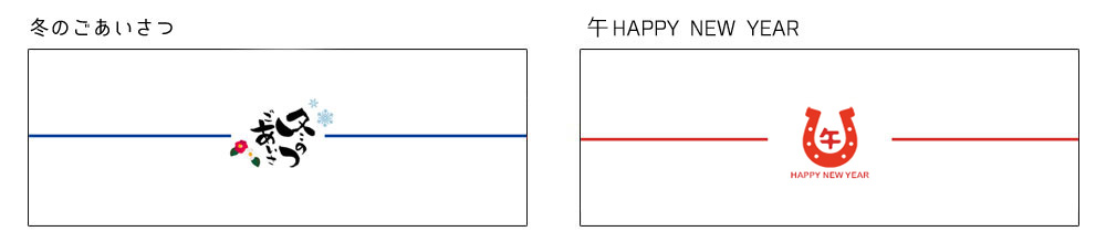 お歳暮を贈る期間は12月上旬から25日頃までが一般的ですが、最近では11月下旬から贈る方も増えています。表書きは年内であれば「お歳暮」、年を越す場合は「お年賀」「寒中御見舞」と書きます。最近はあまりかしこまらず”ご挨拶”として贈られる方も多いため、「冬のごあいさつ」や「Happy New Year」などカジュアルにご利用いただける冬の掛け紙もご用意しております。