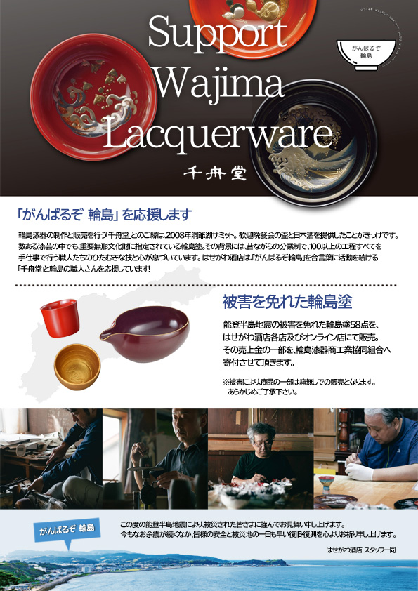 輪島の一日も早い復旧・復興を願って、売上金の一部は輪島塗商工業協同組合へ寄付させて頂きます。