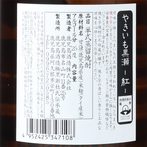 やきいも黒瀬 紅 芋焼酎 25度 / 鹿児島酒造