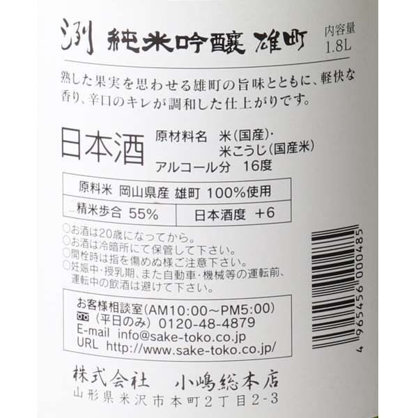 55%精米した雄町を山形酵母で醸しました。熟した果実を思わせる旨味とともに、洌らしい軽快な香り、辛口のキレが調和した仕上がりとなっています。蔵紹介