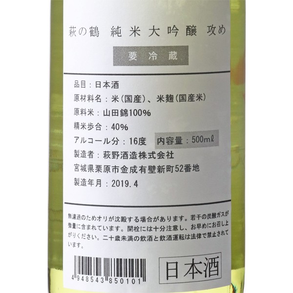 出品酒に用いられる純米大吟醸の攻めの部分を詰めました。デリケートな酒質の為、ご家庭では冷蔵管理で保管をお願い致します。お早目にお飲みいただくことをお奨めいたします。蔵紹介