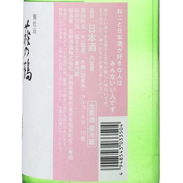 萩の鶴人気の猫シリーズ!華やかな香りと上品な甘さが特徴のうすにごり生原酒です。爽快な酸と、初々しい甘味、やさしい旨味が好印象!おりがらみの芳醇な旨味とピチピチとしたガス感がバランス良くまとまっています。*画像は昨年の物を使用しています。予めご了承下さい。