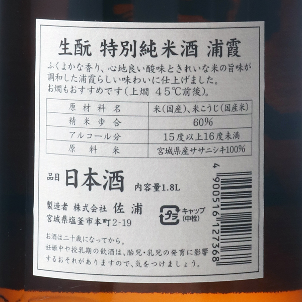 米の旨味を引き出した浦霞流生もと造りで仕込んだ純米酒。すっきりとしたきれいな奥行きと深みを感じさせます。宮城県産ササニシキ60%精米。蔵紹介