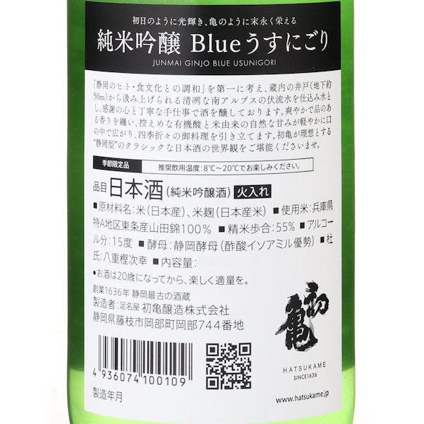 高品質の玉露の産地だけでなく、高品質の日本酒もあります!寛永12年、1636年創業。現在の静岡市で創業し、明治初期の頃に現住所である岡部町に移りました。岡部町は東海道五十三次の宿場として栄えたことで有名で、初亀は旅人の癒しとして愛されていました。現在では高品質の玉露がとれることでお茶が有名です。そんな蔵元の酒造りは、兵庫県東条産の山田錦を始め、富山県南砺産の五百万石、雄山錦とこだわった原料を蔵内に流れる南アルプスの伏流水で醸します。量より質にこだわり、お客様の為に日々酒造りに勤しんでいます。