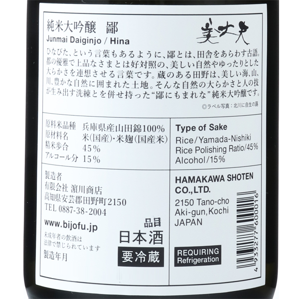 上品でフルーティーな香り、後切れの鋭さ、秋上がりならではのまろやかで力強い旨味を感じます。兵庫県産の山田錦45%精米を使用。蔵紹介