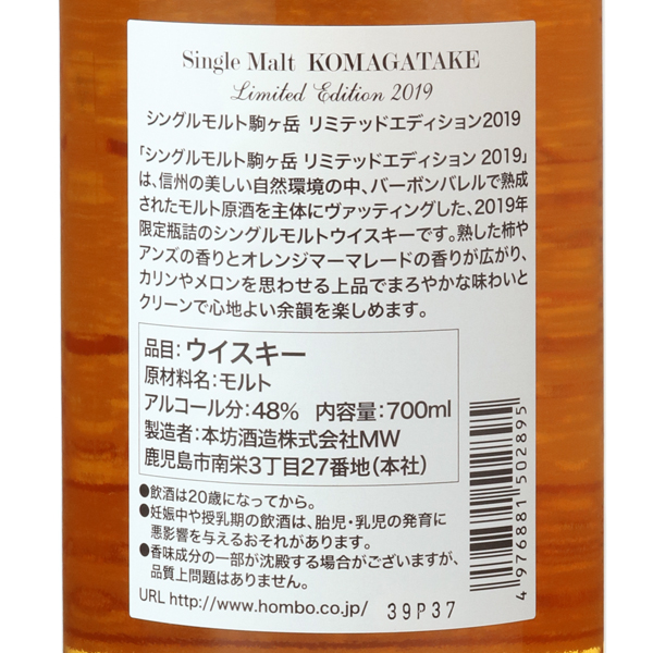 マルス シングルモルト 駒ヶ岳リミテッドエディション 2019 48度 / マルス駒ヶ岳蒸溜所