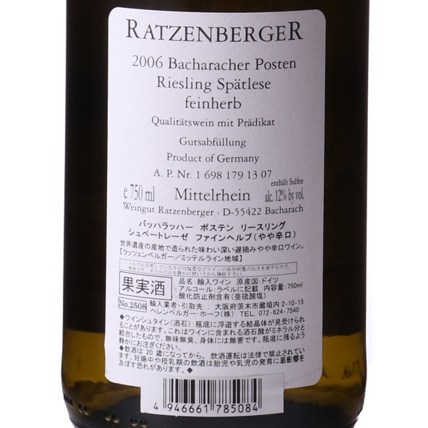 バッハラッハー・リースリング・シュペートレーゼ 2006 / ラッツェンベルガー