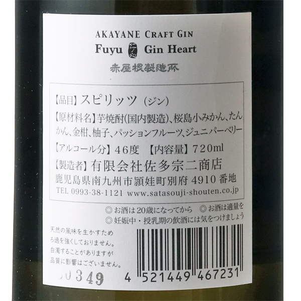 AKAYANE CRAFT GIN HEART 冬 46度 / 佐多宗二商店