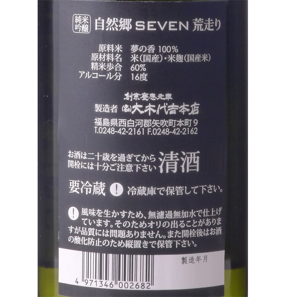 自然郷の「セブン」シリーズは、福島県が独自に開発した「うつくしま夢酵母(F7-01)」という酵母を用いて「食事に寄り添うお酒」をコンセプトに醸したお酒です。フレッシュな味わいが特徴的な「自然郷」ですが、こちらは更にピチピチはじける絞ったばかりの新酒生酒です!あらばしりらしいフレッシュで細やかな気泡。クリアで雑味もなく、軽快で爽やか、柔らかい甘みが口いっぱいに広がります。蔵紹介