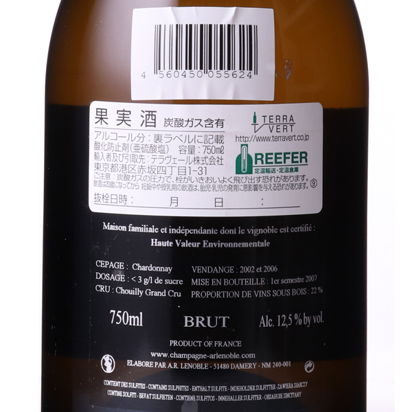 家族経営の小規模メゾン。グラン・クリュ「シュイィ」に10ha を所有し、その緻密なシャルドネを活かして36ヶ月熟成、 ソレラシステムで複雑味のあるシャンパーニュを醸している。長い歴史の中でシャンパーニュ・メゾンは買収と合併を繰り返し、現在ではそのほとんどがオーナー企 業に支えられている。 その中で家族経営を続けている珍しいメゾンが「A.R. ルノーブル」。一切出資を受け付けず、自分達のスタイルを貫いている。