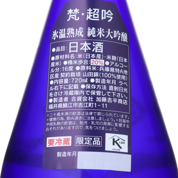 マイナス10度で約5年間熟成されたお酒を中心としてブレンドされた、兵庫県特A地区産契約栽培山田錦を精米歩合20%まで磨いた究極の純米大吟醸酒です。素晴らしい香りと深い味は感動を呼ぶ、まさに日本の酒文化を代表する珠玉の名酒です。注意事項