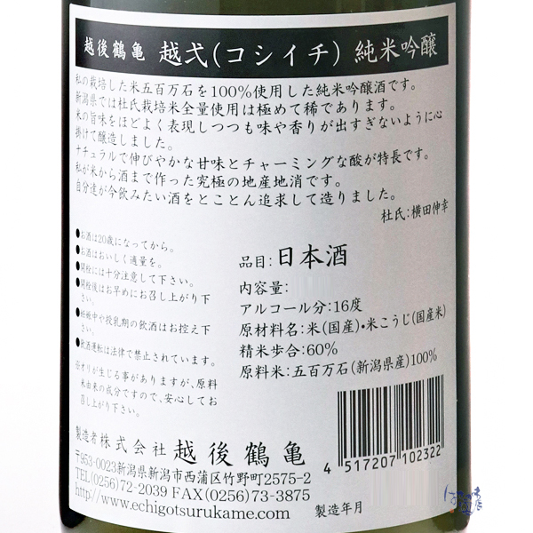 米の豊かな深味が楽しめる新潟酒明治23年(1890年)創業。新潟市西蒲区。角田山からの水と蒲原平野の良質米、仕込み期である冬の気候に恵まれた地に越後鶴亀の蔵は建っています。人々に喜ばれる美味しい酒を目指し、銘もめでたく分かりやすい鶴亀という名をつけました。
