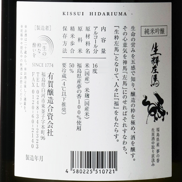 一生の粋な酔いを安永3年、1774年創業。東日本大震災後に代替わりした若き杜氏をはじめ、若手の力で新しい酒造りに挑戦。世界へ発信していくために作った新銘柄「生粋左馬」には、酒造りの粋を極める心意気を、古来より縁起物とされる左馬に乗せて皆様にお届けするといった想いが込められています。純米大吟醸は山田錦、純米吟醸は夢の香、純米は五百万石と、それぞれ違う酒米の個性を引き出し、お酒の味わいに上手に表現されたブランド。香味のバランスが良くいきいきと舞う左馬の様に躍動感溢れるお酒をお楽しみください。