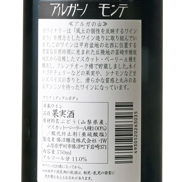 アルガーノ・モンテ 2020 2021 / 勝沼醸造