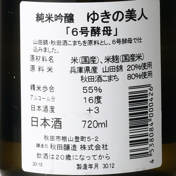 ゆきの美人 純米吟醸 6号酵母 生詰