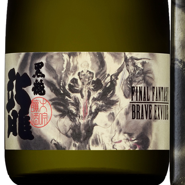 黒龍酒造が誇る大吟醸酒「黒龍 大吟醸 龍」と、SQUARE ENIXのスマートフォン向けゲームアプリ「ファイナルファンタジー ブレイブエクスヴィアス」とのコラボレーション企画で誕生した特別な一本。同作のイメージイラストを手掛けるアーティスト・天野喜孝氏により、ラベルには勇ましくも美しい黒龍が描かれております。あなたの冒険のひとときを、珠玉の味わいとともにお楽しみください。注意事項