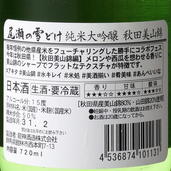 尾瀬の雪どけ 純米大吟醸 美山錦 生