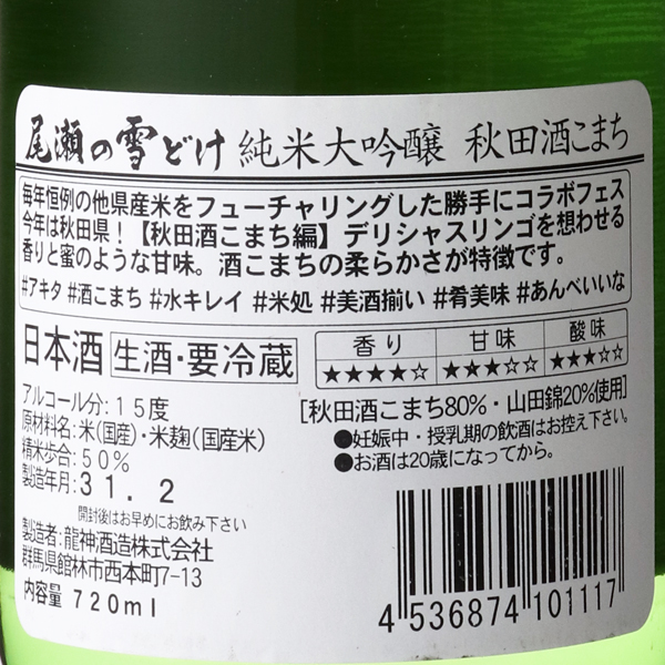 尾瀬の雪どけ 純米大吟醸 酒こまち 生