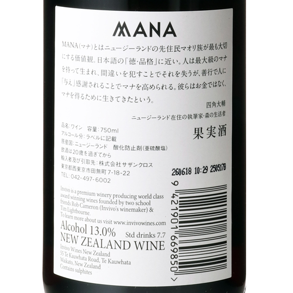 マナ バイ インヴィーヴォ ピノノワール 2017 / インヴィーヴォ