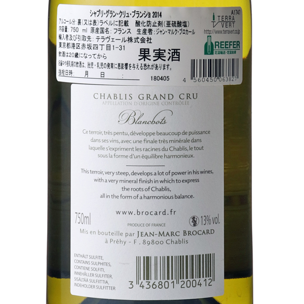 シャブリ グラン・クリュ ブランショ 2014 / ジャン・マルク ブロカール