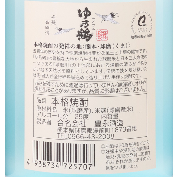 ゆ乃鶴 特濃にごり 米焼酎 25度 / 豊永酒造