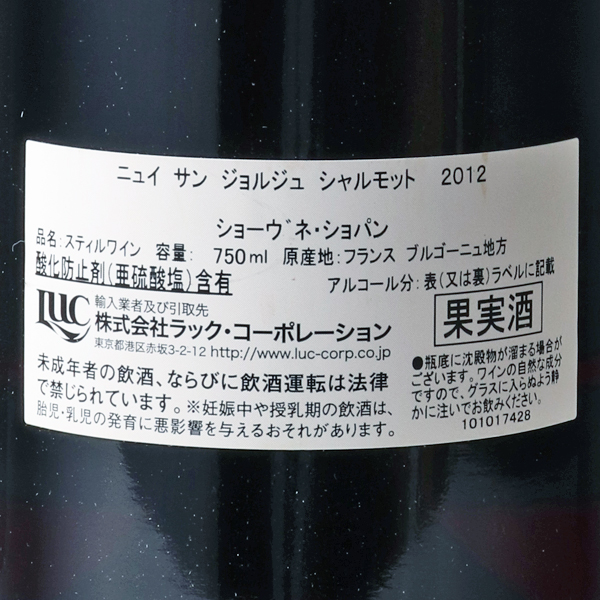 ニュイ サン ジョルジュ シャルモット 2012 / ショーヴネ・ショパン