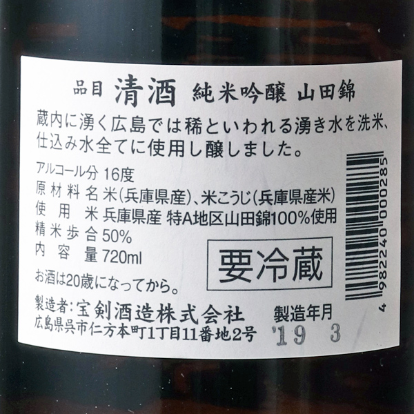 宝剣 純米吟醸 山田錦 生酒