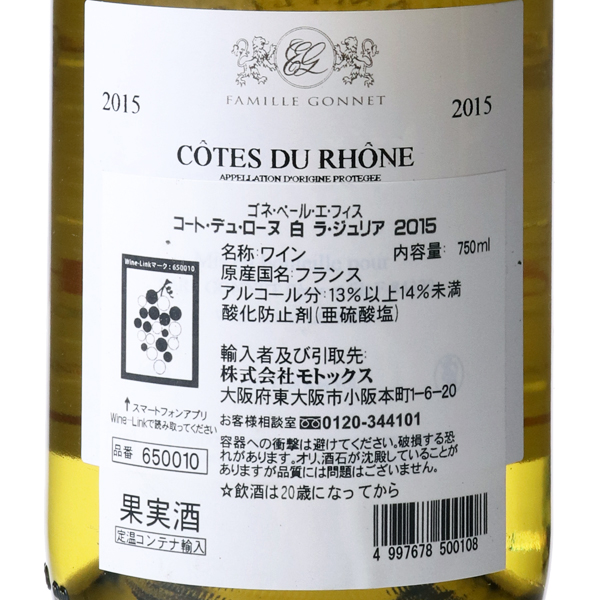 コート・デュ・ローヌ・ブラン 2015 / ゴネ