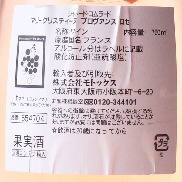 プロヴァンス・ロゼ マリー・クリスティーヌ 2018 2019 / ロムラード