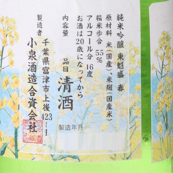東魁盛のお酒の中でも特に爽やかな吟醸香が特徴なのがこの春酒。ラベルには菜の花があしらわれており、見た目からも春を感じます。春らしい軽やかな味わいで、甘さを控える事でよりフレッシュで爽やかな味わいに仕上げました。春酒らしい華やかな印象と同時にバランスの良さもお楽しみいただけます。受賞歴