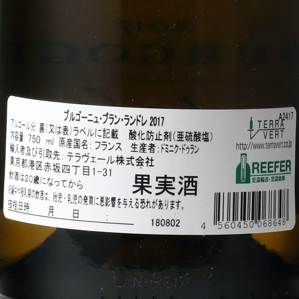 ブルゴーニュ・ブラン・ランドレ 2017 / ドミニク・ドゥラン