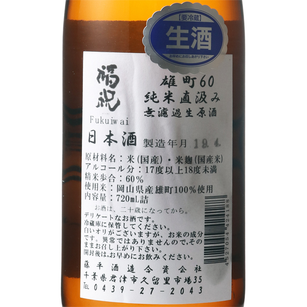 福祝 純米 雄町60 直汲み 無濾過生原酒