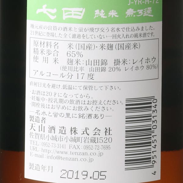 こだわりは天山伝統のDNA天山酒造は文久元年、1861年創業。酒蔵の前を流れる祇園川は天山山系の水を集める清流、源氏ボタルの発祥の地です。天山の仕込み水にはこの秀峰・天山の中腹から清冽な湧き水を専用の水道で蔵まで導き使用しています。この天山の伏流水は酒造りにとっては理想的な名水で鉄分が無く、しかもカルシウムやマグネシウムといったミネラル分を含んだ硬水です。そのため比較的マイルドな酒質の多い佐賀県において、天山ではしっかりとした味わいの男酒がうまれます。平成15年からは人・米・酒(じんまいしゅ)プロジェクトをスタート。地域の人と酒造りを結びつけ、日本酒という文化を次代に伝えていく働きをしています。その他にも佐賀県一万人で乾杯プロジェクなどを企画、先代から引き継いだ理念「不易流行」を掲げ、常に攻めの姿勢で酒を造っています。