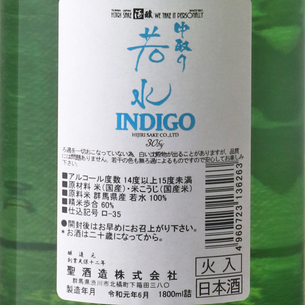 聖 若水60 INDIGO 夏酒 中取り