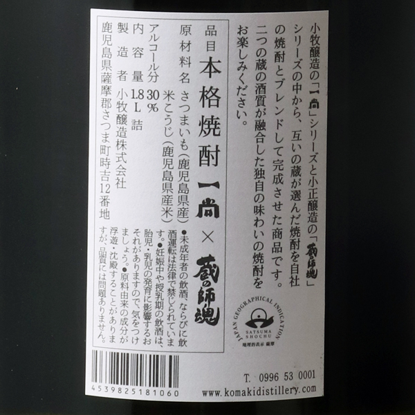 一尚 blended 蔵の師魂 芋焼酎 30度 / 小牧醸造 × 小正醸造