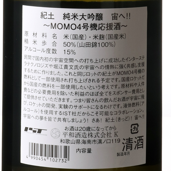 紀土 KID 純大 宙へ!! MOMO4号機応援酒