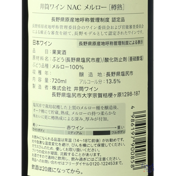 NAC メルロー樽熟 2018 / 井筒ワイン