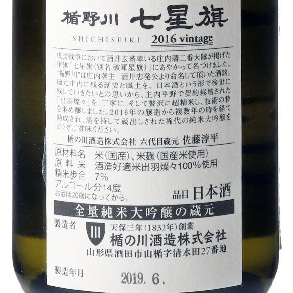 楯野川 純米大吟醸 七星旗 vintage2016 *クール便のみ