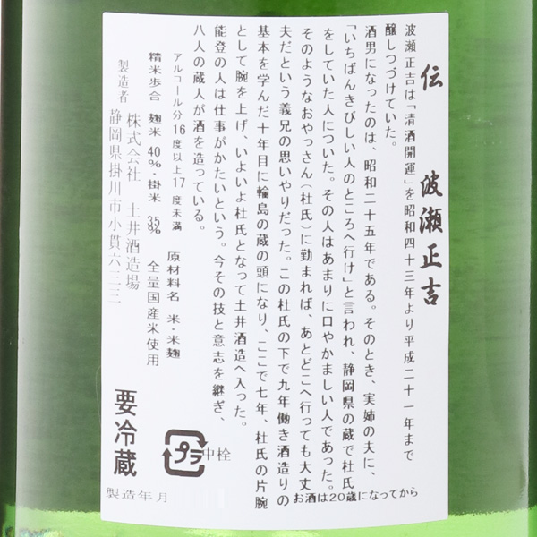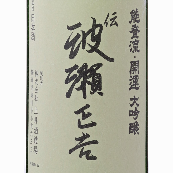開運の杜氏歴30年、「能登四天王」の一人と称された波瀬正吉杜氏の技を伝承し、創り出された、蔵元最高級の純米大吟醸です。注意事項