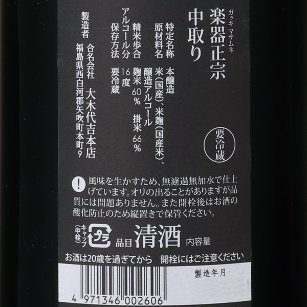 楽器正宗 本醸造 中取り