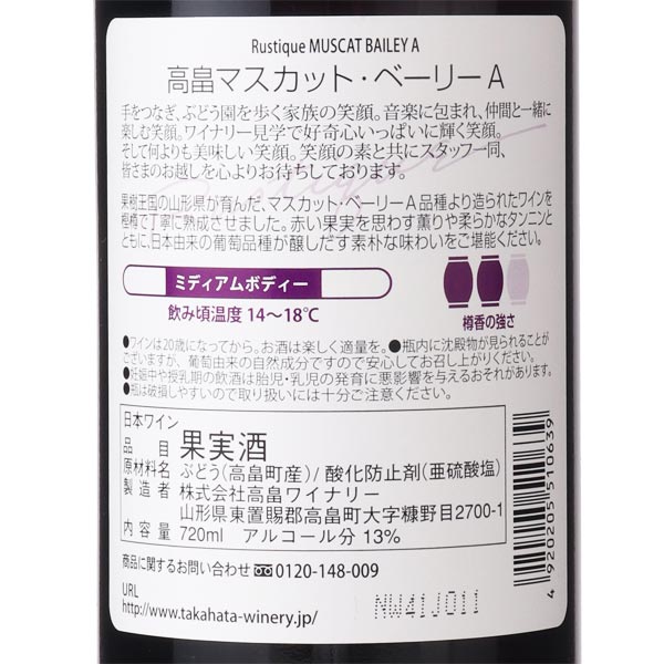 高畠 ラスティック マスカットベーリーA 2017 / 高畠ワイナリー