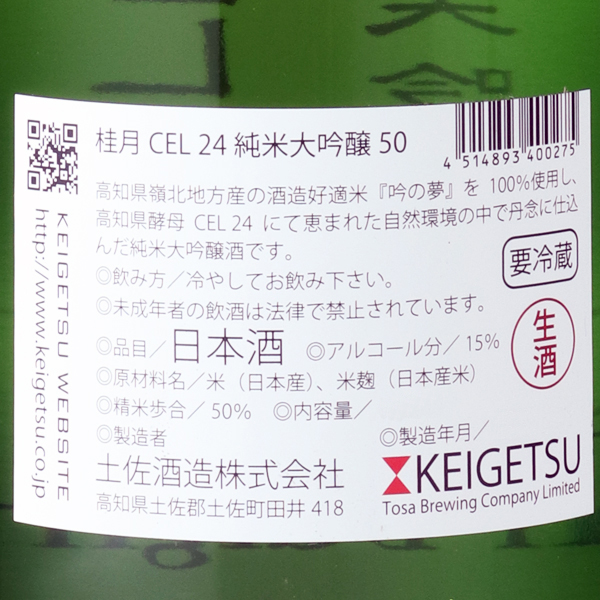 月の名所として名高い桂浜の月高知県北部の山間地、土佐嶺北地方にて明治10年(1877年)の創業以来144年間、豊かな水と澄んだ空気の中で高品質な酒造りを行う。酒蔵のある高知県土佐郡土佐町は、四国の中央部を流れる吉野川の源、四国の水瓶と言われる早明浦湖畔の静寂な自然環境に囲まれています。地元の棚田で育った酒米100%による酒造り、生酛・山廃に代表される伝統的技法にも積極的に取り組み、Sake du Terroir “土地の酒” としての「桂月」の酒造りを心掛けています。