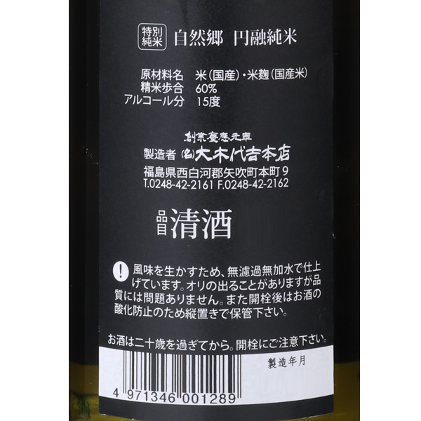 看板銘柄「自然郷」は、純米酒という言葉がまだない時代に、米だけで造る本来の日本酒の姿を求めて造られました。現在では純米酒の先駆けとして愛好家の間で広く知られる様になりました。また、近年「楽器正宗」を復活させ本醸造のイメージを覆す美味しさで大人気に。また、売れ残った甘口のお酒から個性あふれる「こんにちは料理酒」をひらめいて、プロの料理人から愛用されるなど注目を集めています。