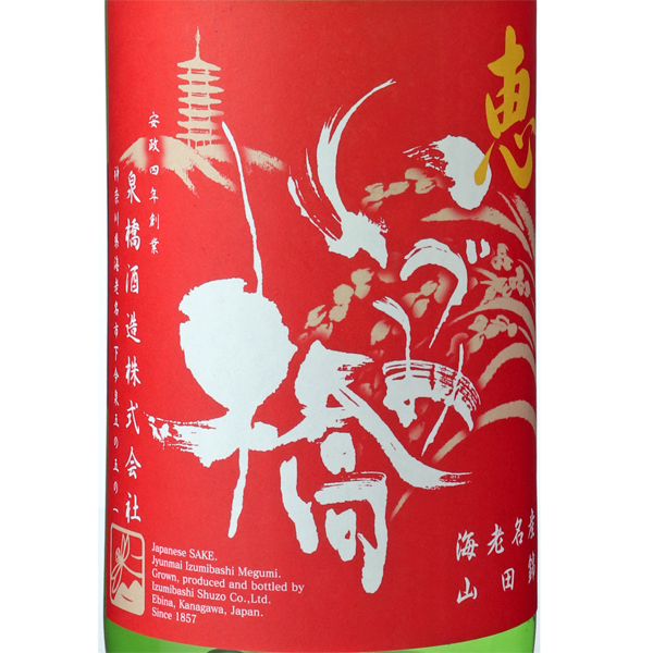 酒造りと米作り、どっちも本気です!…地元の田園風景を守る全量純米蔵泉橋酒造は江戸安政4年、1857年創業。県内有数の穀倉地帯である海老名耕地に蔵を構え、地元の農家と共に潤沢な米と丹沢山系の伏流水という2つの恵みを生かした酒造りを始めました。現在蔵で使用する酒米は9割以上が地元の契約栽培及び自社栽培米です。日本酒は醸造物であるだけではなく、農業副産物であると考え、米作りから酒造りを実践していく栽培醸造蔵としての歩みを進めています。無農薬や低肥料、冬期湛水など田んぼの健康を守り環境負荷を減らす栽培にも取り組んでいます。そんないづみ橋のお酒のラベルには自然環境に寄り添った農業を象徴する存在として、とんぼが蔵のシンボルとして度々登場します。太陽と大地の恵みをいっぱいに受けて育んだ信頼ある地元の米を丁寧に仕込む。海老名耕地の2000年を超える歴史と、自然の恵みを美味しいお酒で伝えていきます。